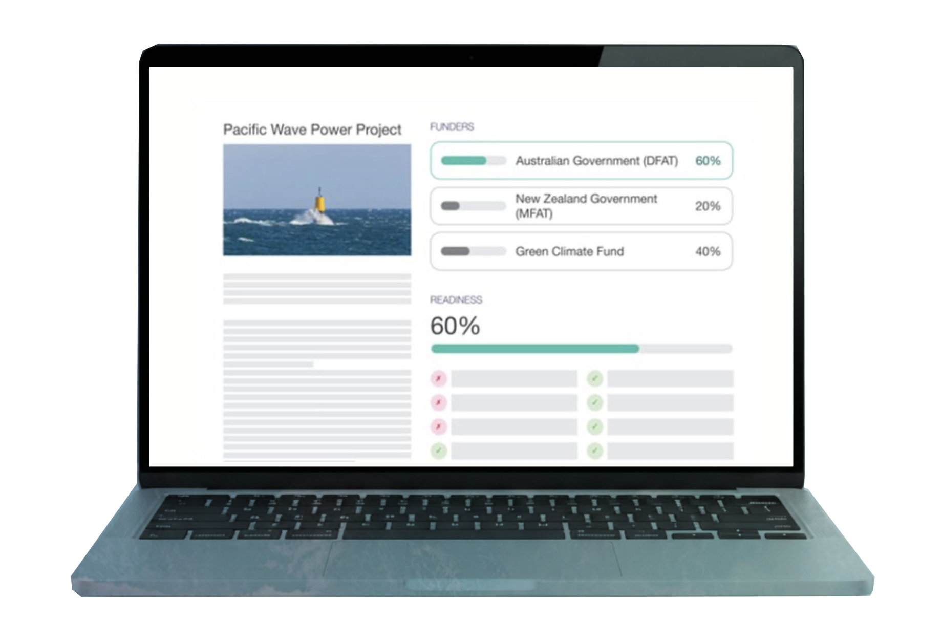 for us.The money is out there. Over a trillion dollars pledged by the Green Climate Fund, ADB, bilateral governments — ready to flow. But to access it, Pacific organisations face a gauntlet. Duplicate compliance checks. Manual verification. Fragmented reporting. Siloed data. Every funder has its own requirements.
